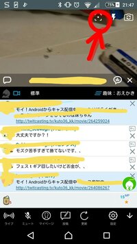 ツイキャス配信してる人の左上についてる マイクのマークとか ビデ Yahoo 知恵袋